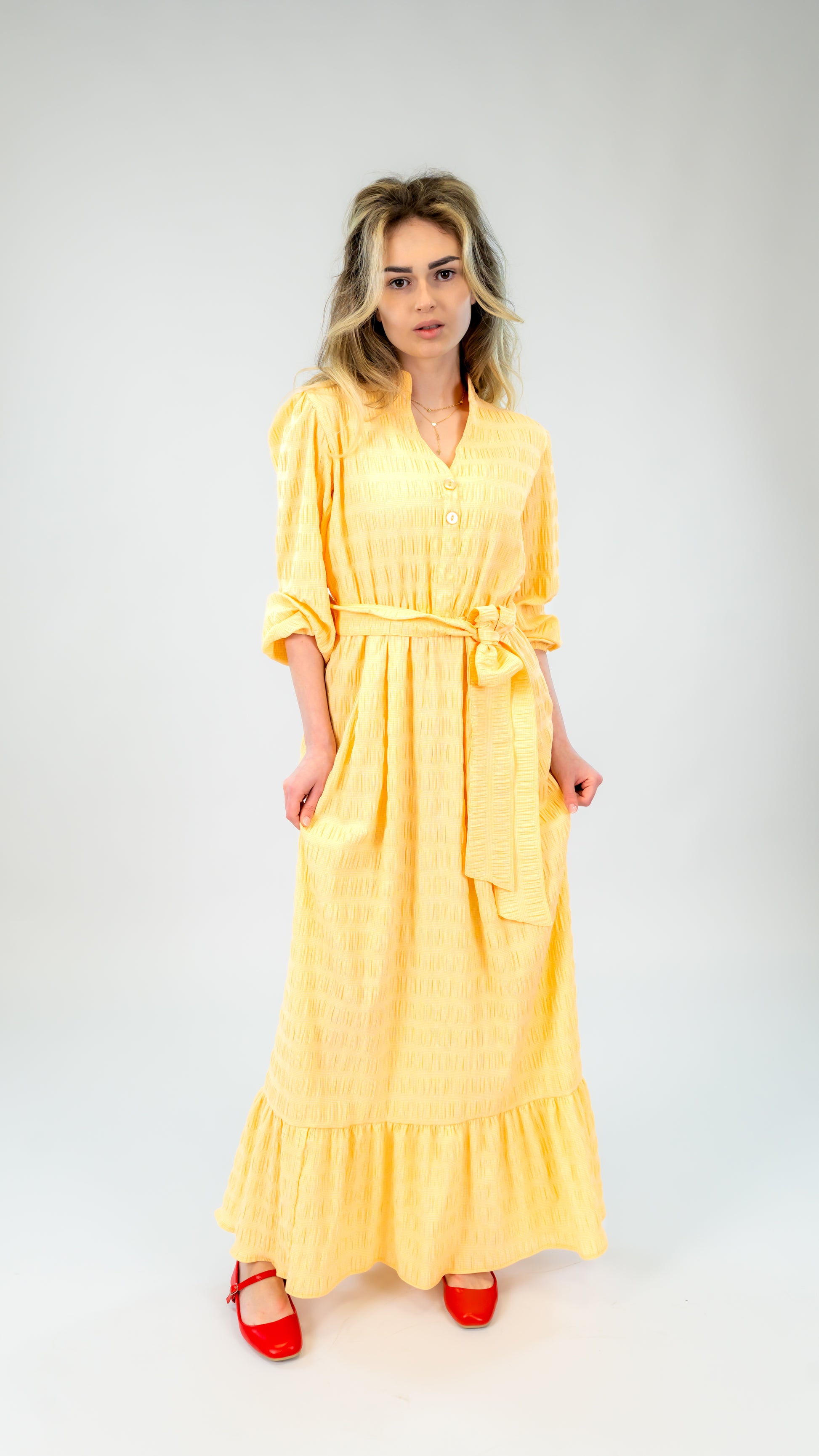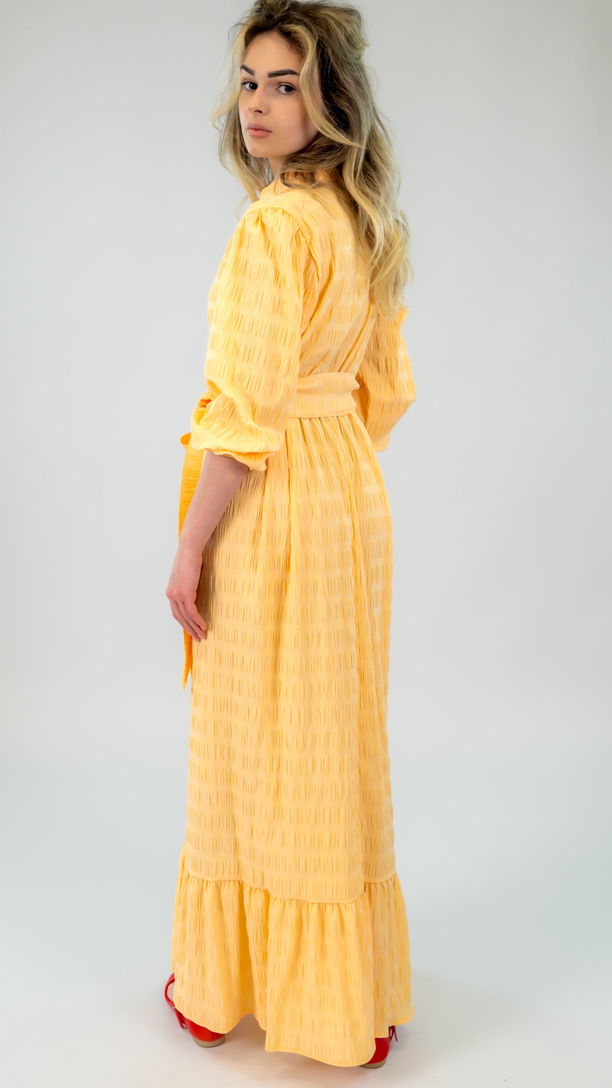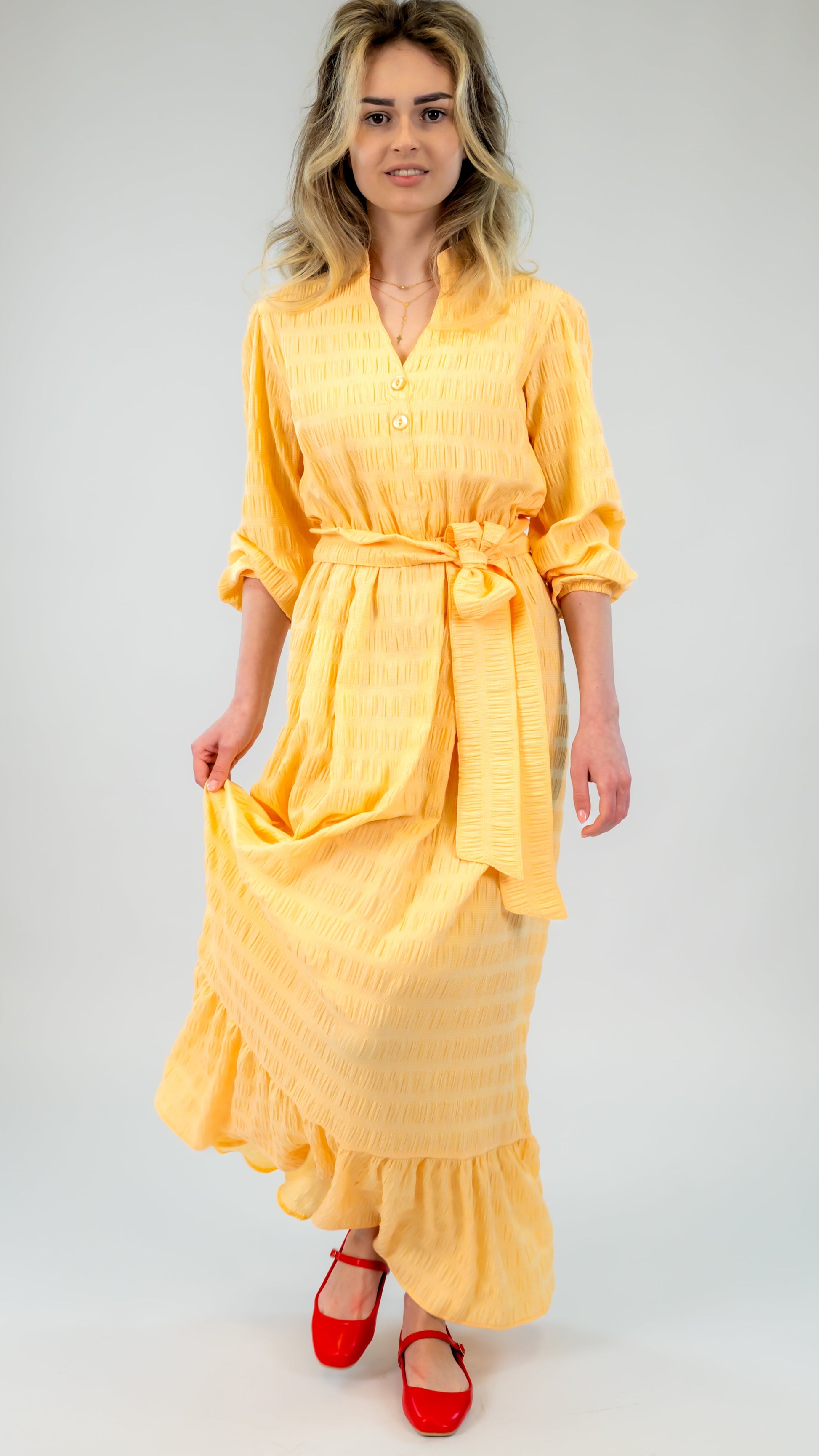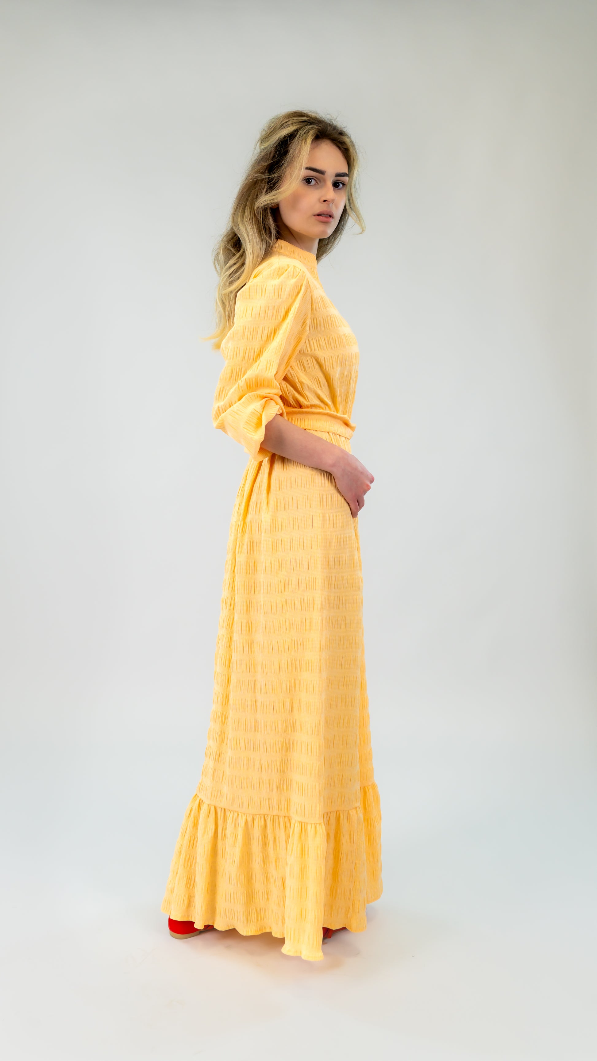 Această rochie maxi Ilinkas în nuanță caldă de somon este confecționată din bumbac natural, ușor și plăcut pe piele – alegerea perfectă pentru zilele călduroase.